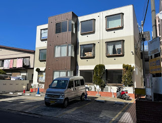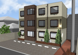 建物の階段部分が前に出ているのでそこに黒茶色を使用