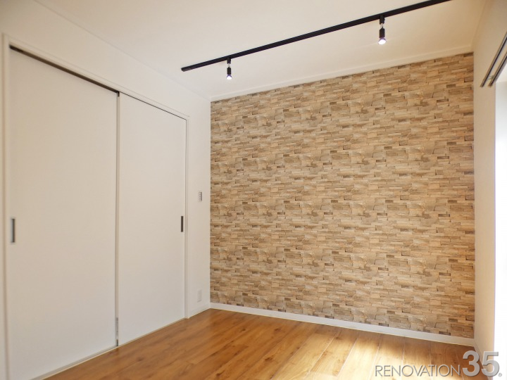 また、壁一面にレンガ調のデザインクロスを合わせ、