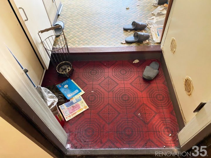 玄関の土間です。レトロチック(⁉)な柄物(笑)