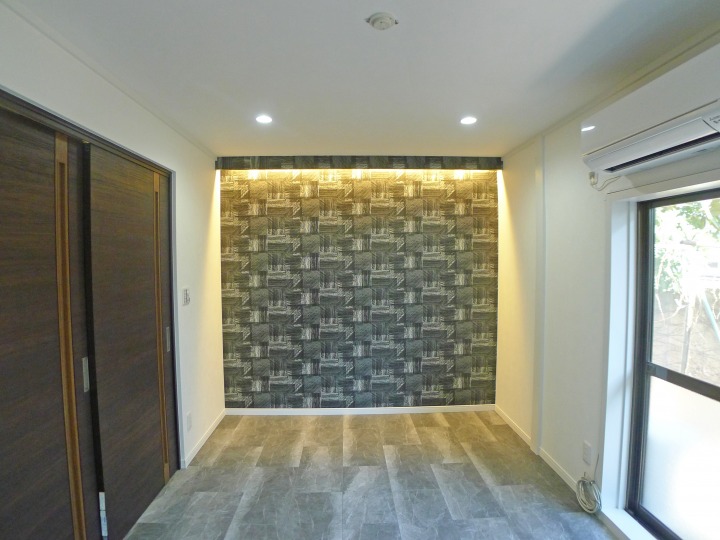 壁上部に前框を造作し、その内部にLEDライティングテープを貼ります。