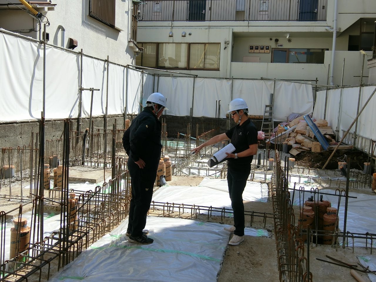 今現場は、既に1階の型枠工事、鉄筋工事に