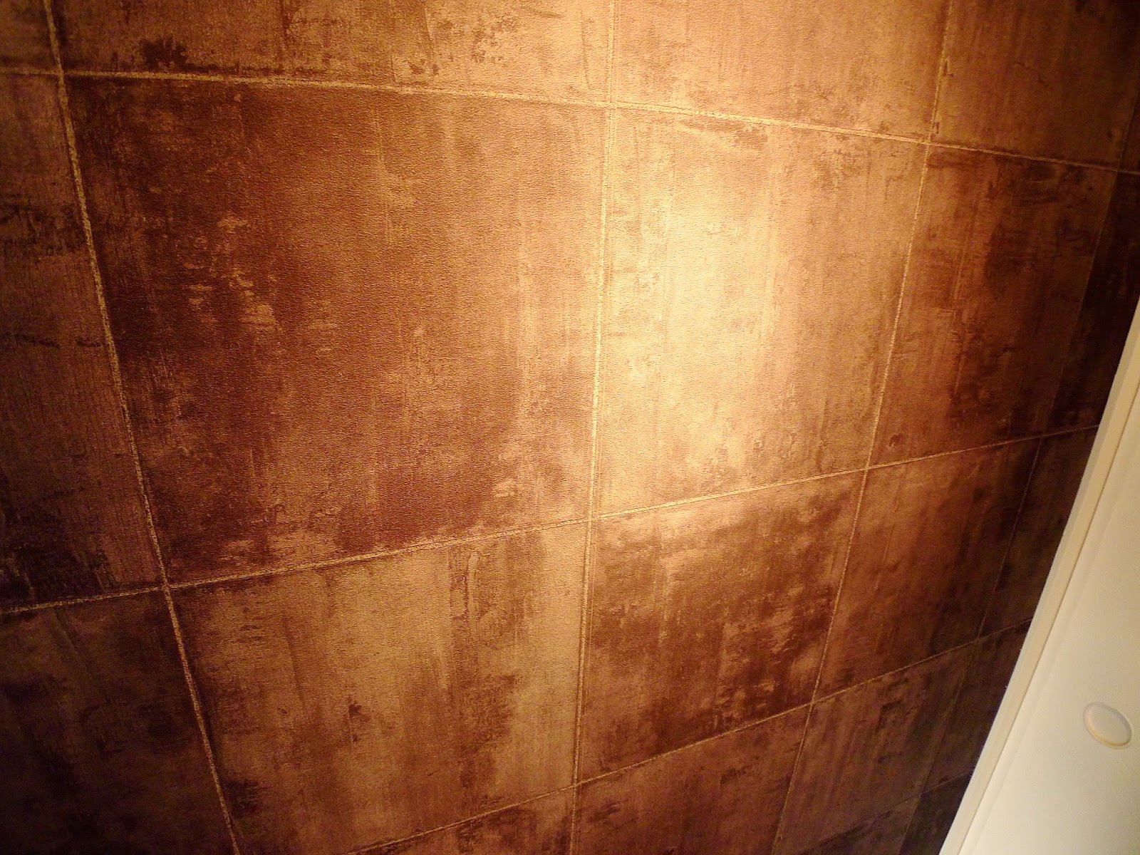写真左側の壁一面にはエイジング調のクロスを使用しました!