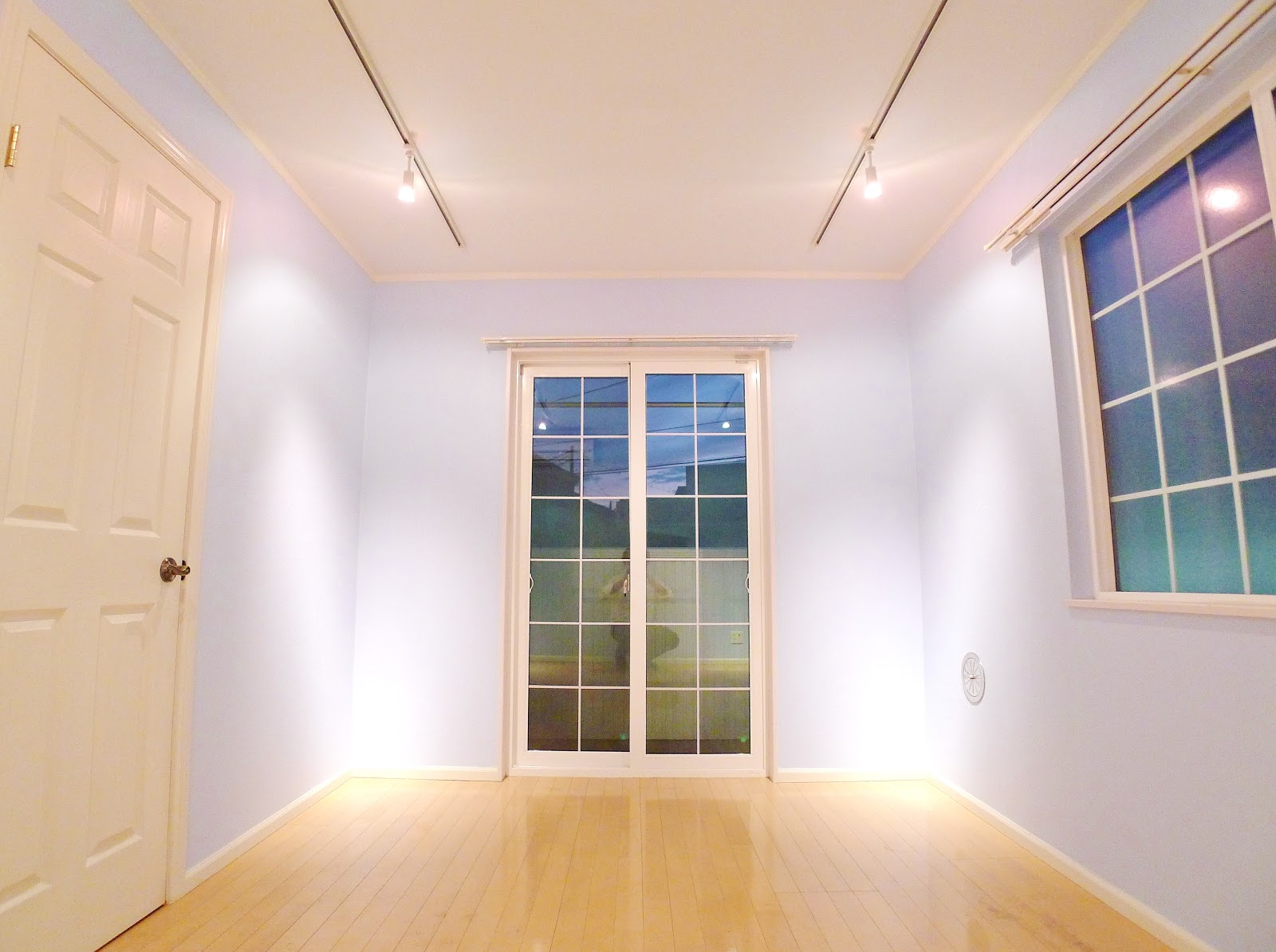 淡い水色に塗装した壁と既存の窓とドアの相性が抜群ですね☆☆☆