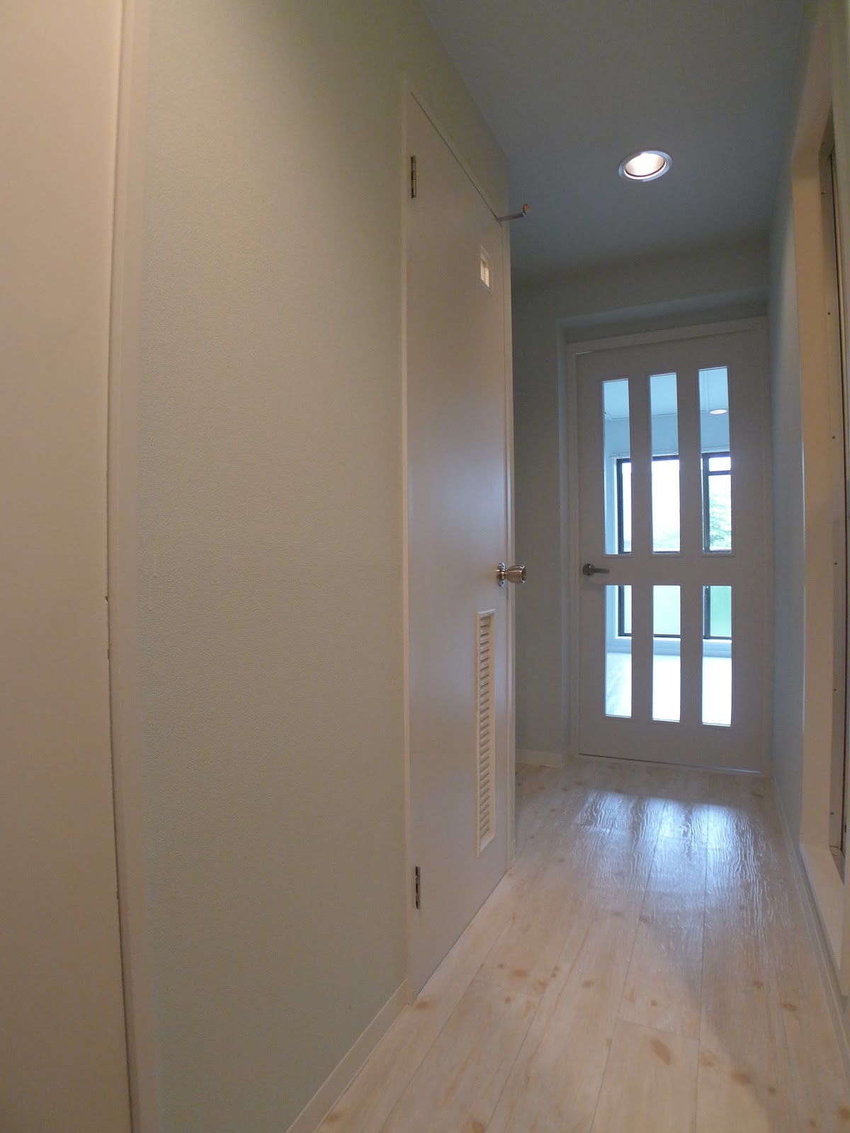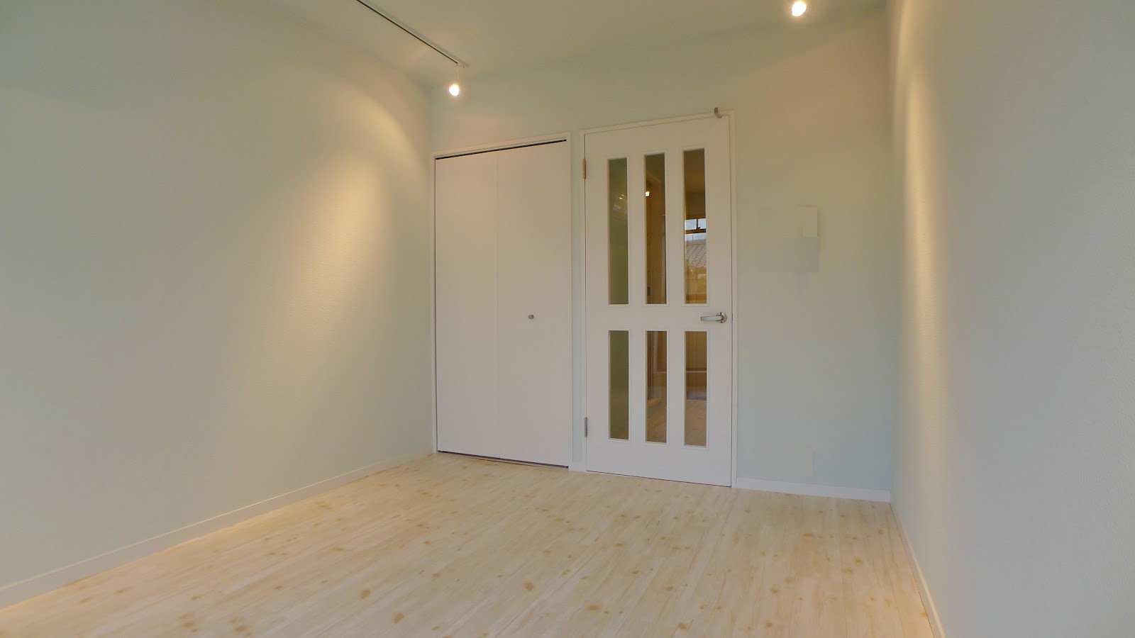 壁に薄いブルーを使い、照明をスポットライトに変えることによって